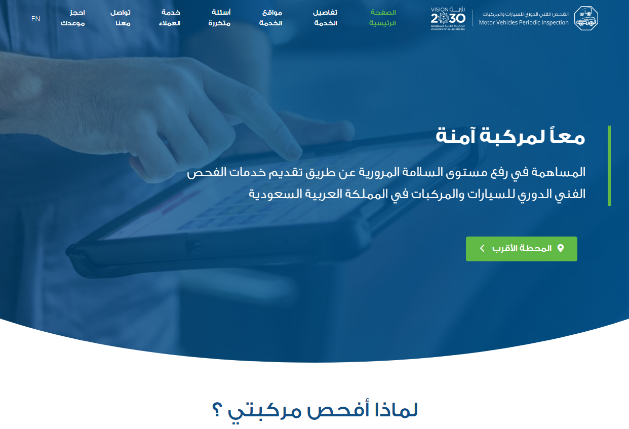 - الدخول إلى الموقع الإلكتروني الرسمي الخاص بالفحص الدوري للمركبات "من هنا".