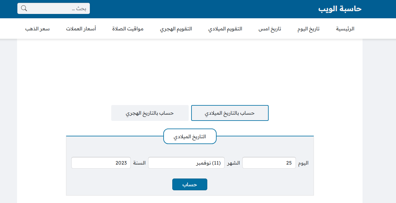 - من ثم تحديد التقويم الهجري أو التقويم الميلادي لبدء الحساب من أعلى الواجهة الرسمية.