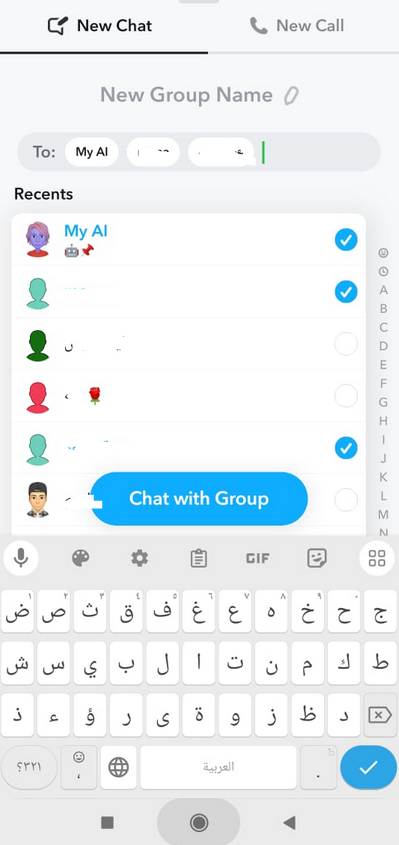 - حدد الأشخاص الذين تريد إضافتهم للمجموعة.