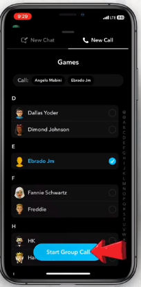 - اختر الشخص الذي تريد الحديث معه أو الأشخاص.