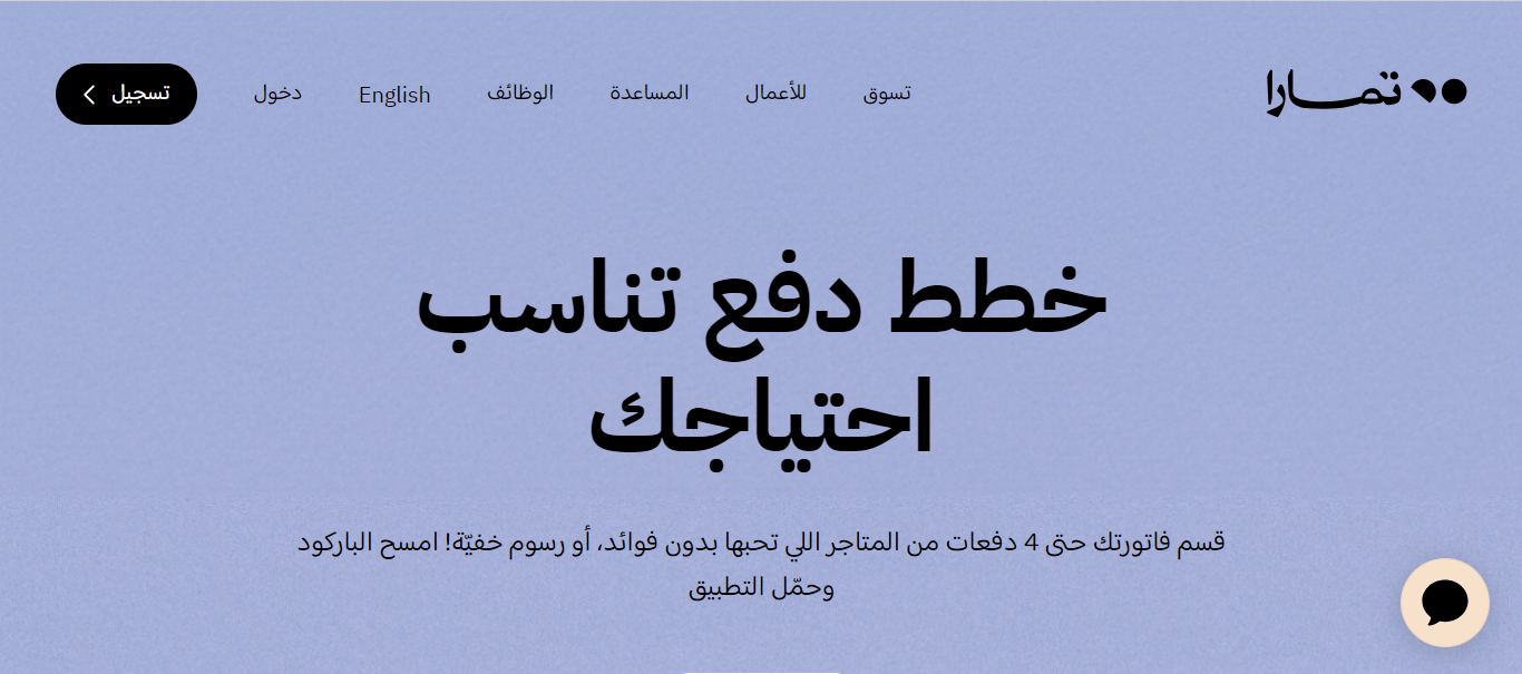 - اختيار طريقة الدفع وهي شركة تمارا.