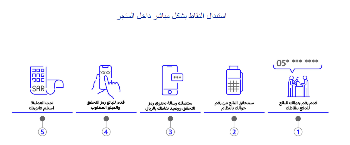 - بعد التأكد من هوية العميل يتم استقبال النقاط وتحويلها إلى أموال ومن ثم تنجح عملية الشراء.