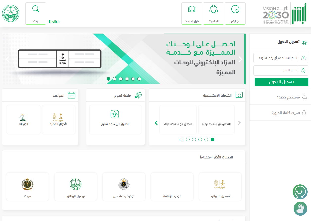 - قم بالولوج إلى منصة أبشر الإلكترونية عبر الرابط المتاح.