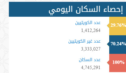 في إطار الحديث عن كم عدد سكان الكويت بدون الوافدين، يجب التعرف على أن مركز التعبئة الأحصاء في دولة الكويت نوه إلى وجود نسب مختلفة من الجاليات والوافدين والتي تتوزع في الدولة وفق الإحصائية التالية: