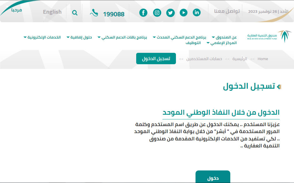 - يتم تسجيل الدخول من خلال بوابة النفاذ الوطني الموحد.