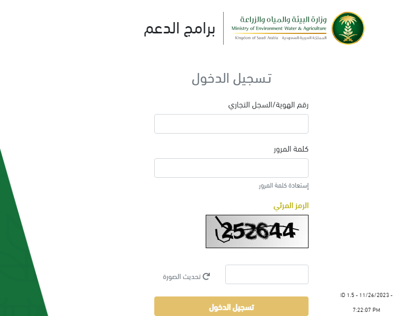 - قم بالدخول إلى الموقع الرسمي الإلكتروني وزارة البيئة والمياه والزراعة برامج الدعم.