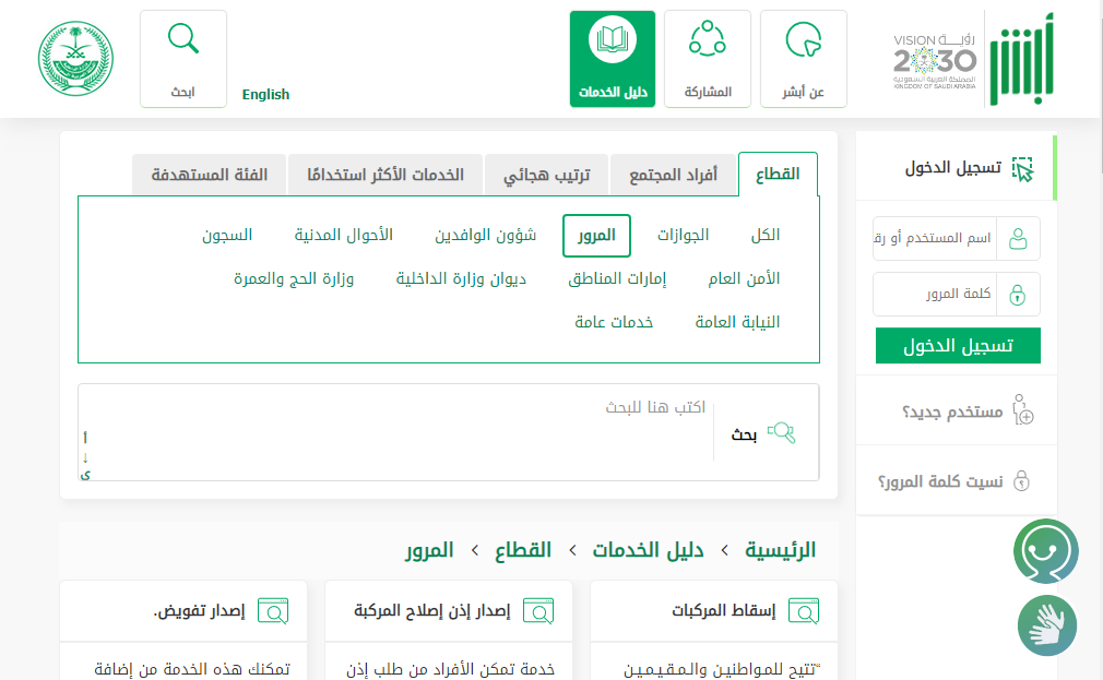 - الولوج إلى منصة أبشر الرسمية.