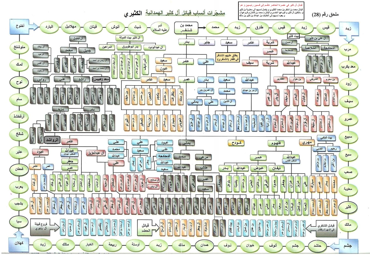 كثير بن مالك بن جشم بن حاشد بن جشم بن جبران بن نوف بن همدان بن مالك بن زيد بن أوسلة بن ربيعة بن الخيار بن مالك بن زيد بن كهلان بن سبأ.