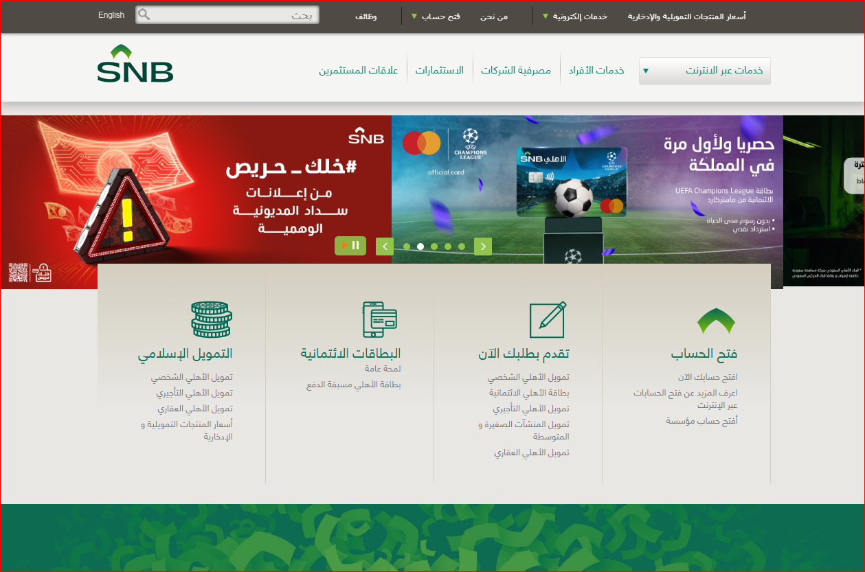 - قم بالدخول إلى الموقع الرسمي للبنك الأهلي السعودي.