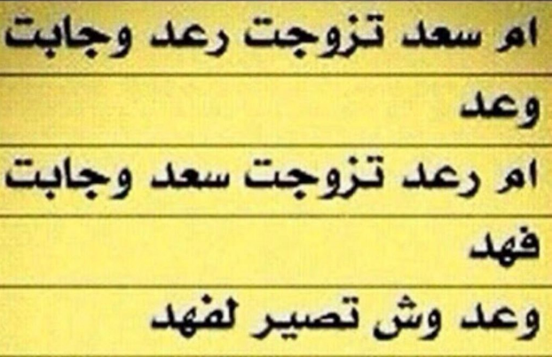ام سعد تزوجت رعد وجابت وعد ام رعد تزوجت سعد وجابت فهد المطلوب وعد وش تقرب لٱ فهد؟ لغز صعب