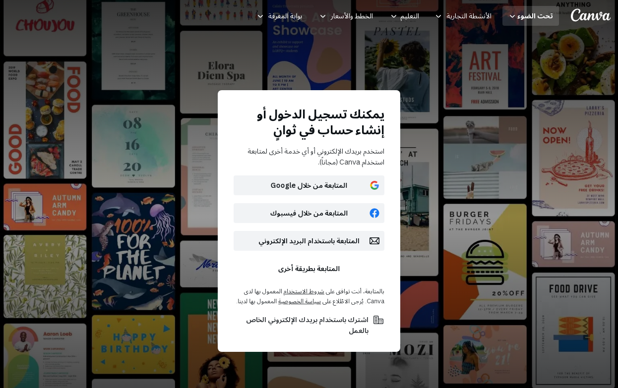 - تسجيل الدخول إلى البرنامج من خلال البريد الإلكتروني أو الحساب الرسمي على الفيس بوك.