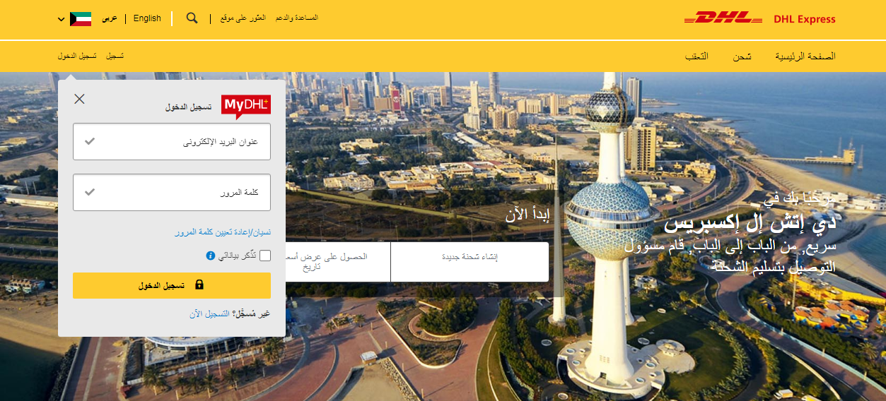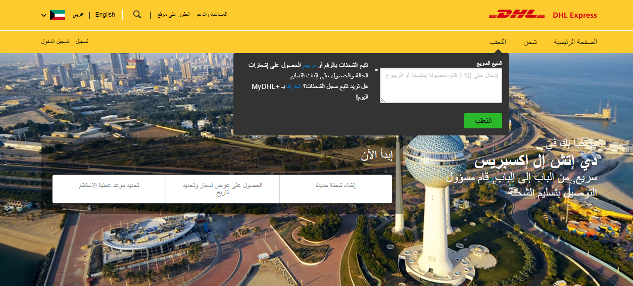 - الذهاب إلى الموقع الرسمي DHL Express الكويت.