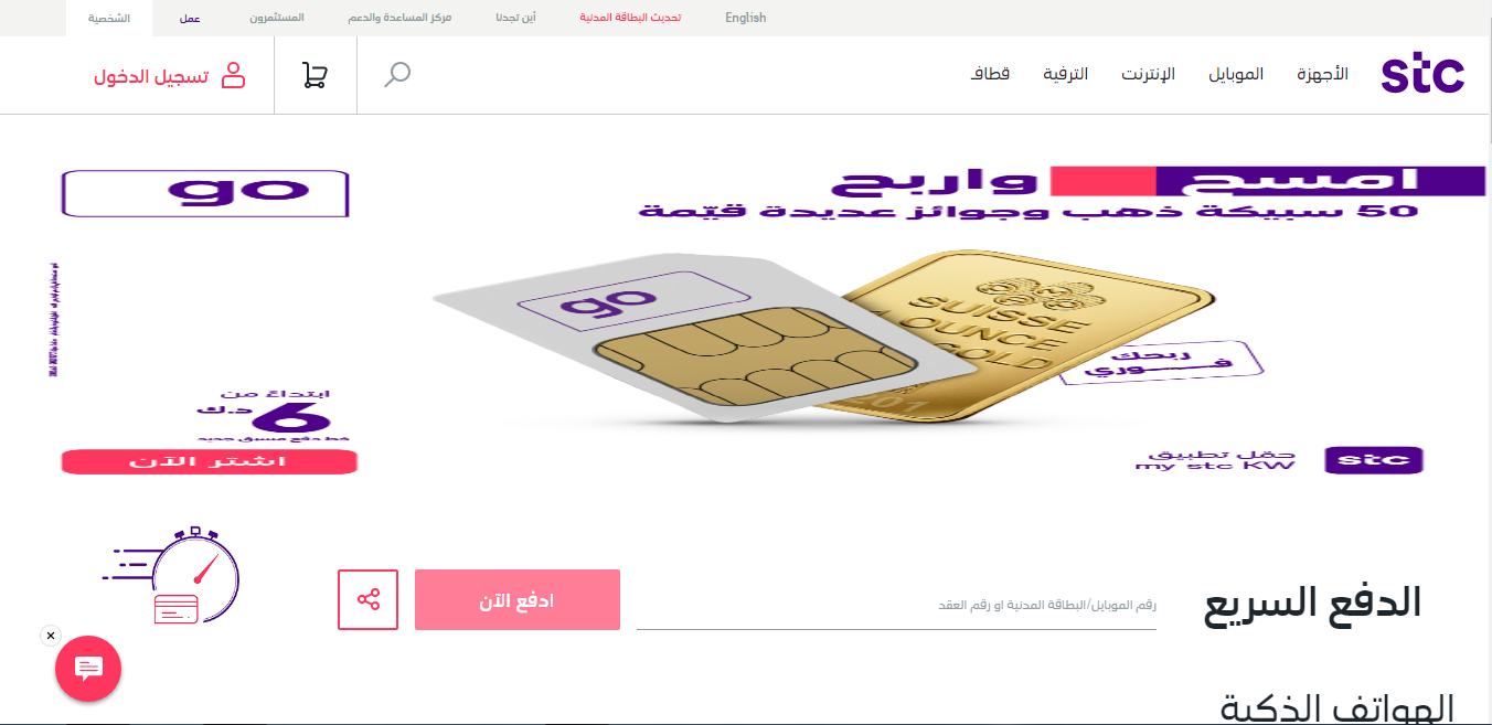 دفع فاتورة فيفا stc الدفع السريع