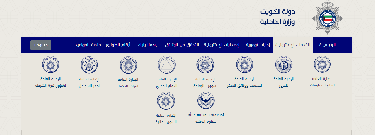- التوجه إلى الموقع الرسمي لوزارة الداخلية في الكويت.
