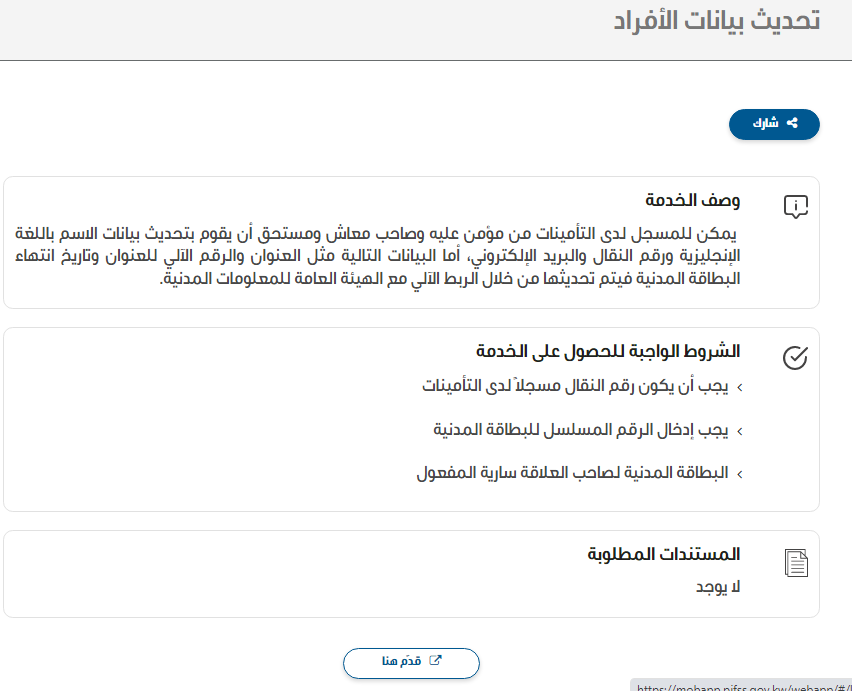 - سوف تظهر صفحة خاصة بخدمة تحديث بيانات الأفراد.