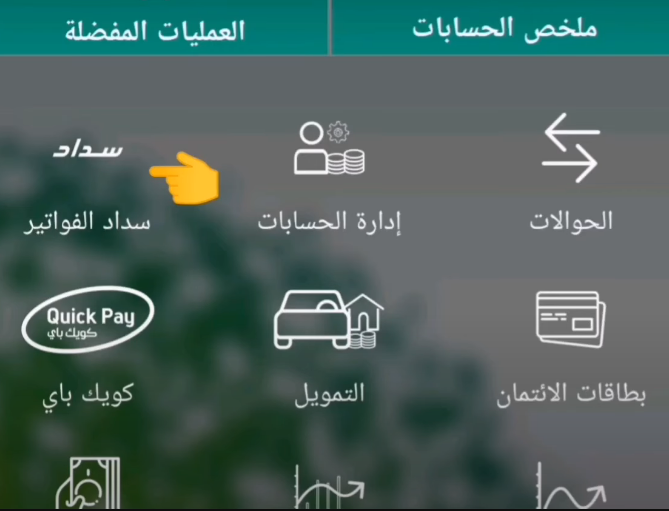 - اضغط على أيقونة سداد الموجودة في بداية التطبيق.