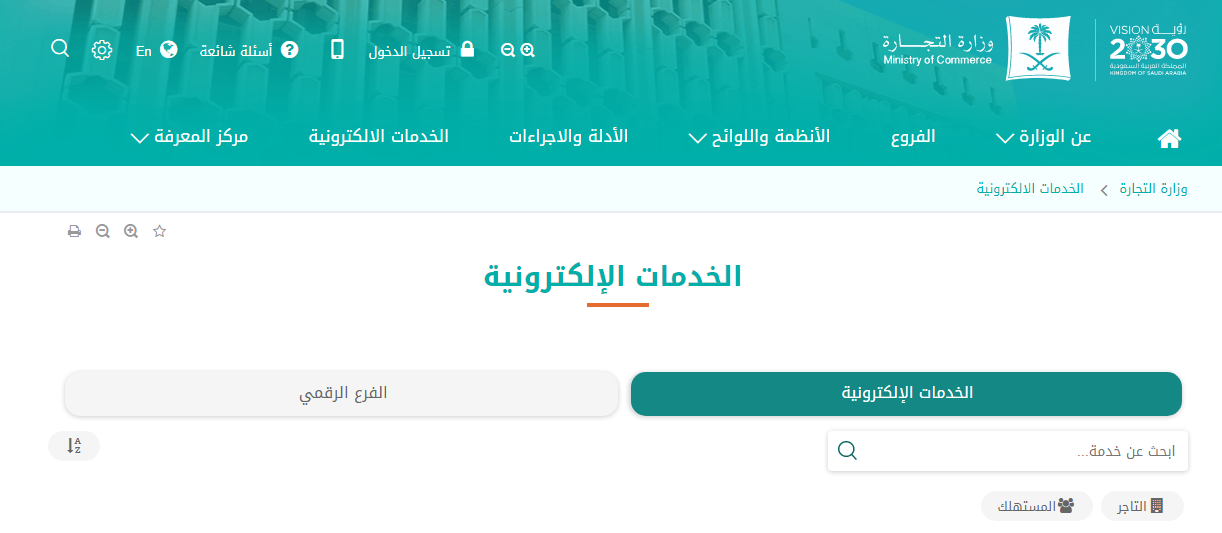 - الدخول إلى الموقع الرسمي لوزارة التجارة السعودية "من هنا".