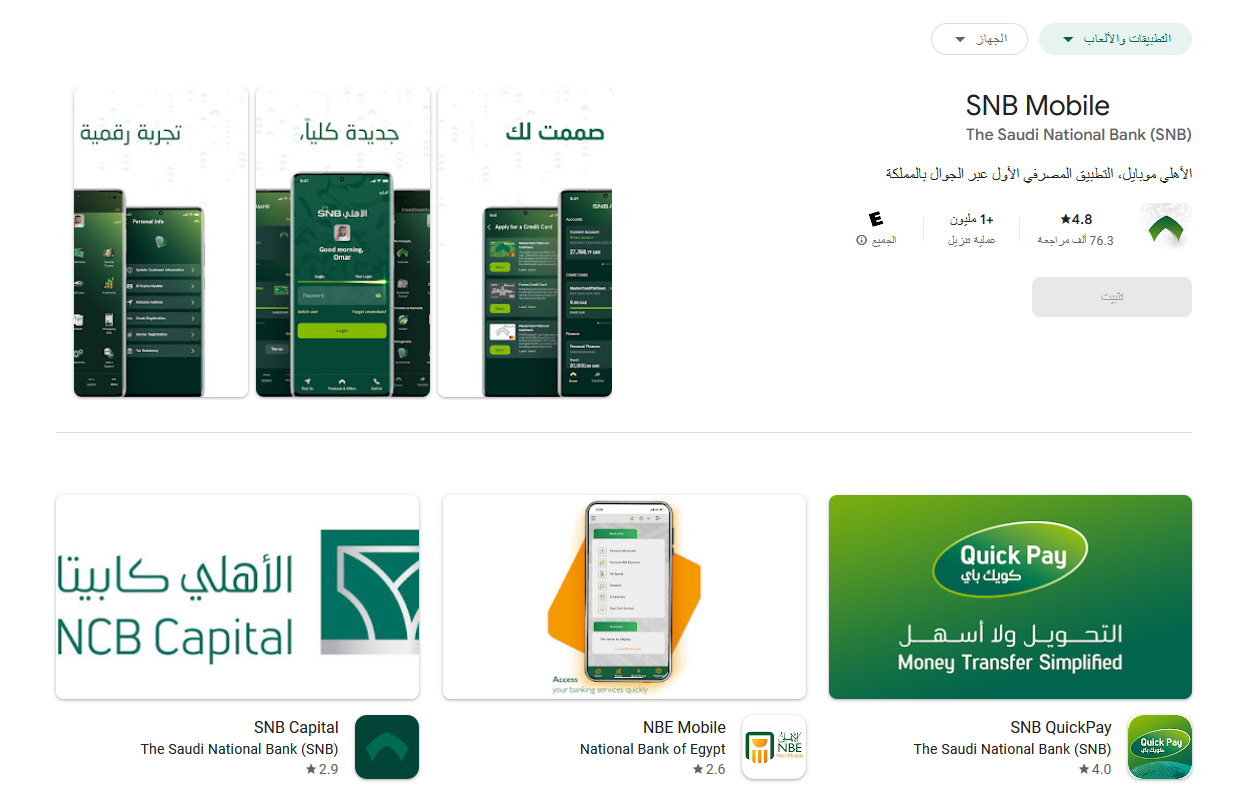 - الدخول إلى تطبيق البنك الأهلي بعد العمل على تحميله من خلال التأكد من التطابق بينه وبين نظام تشغيل الهاتف سواء كان أندرويد أو آيفون.