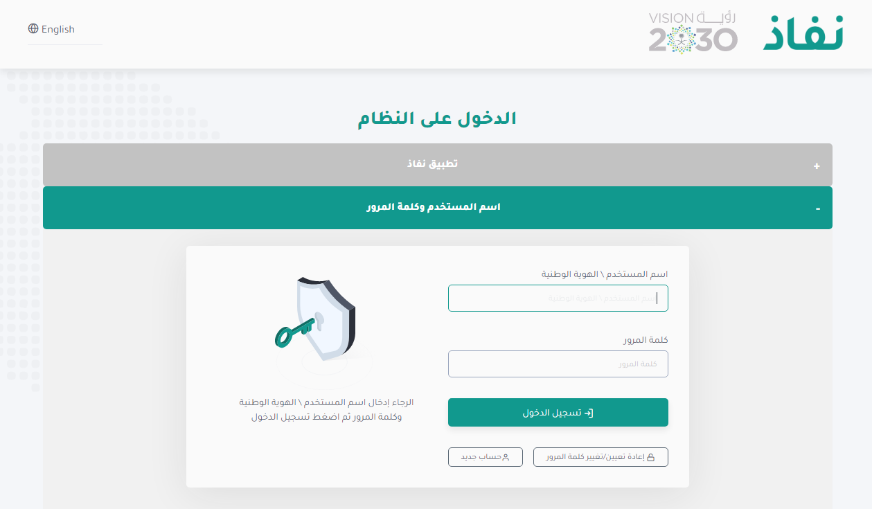 - الدخول إلى الموقع الإلكتروني للنفاذ الوطني الموحد.
