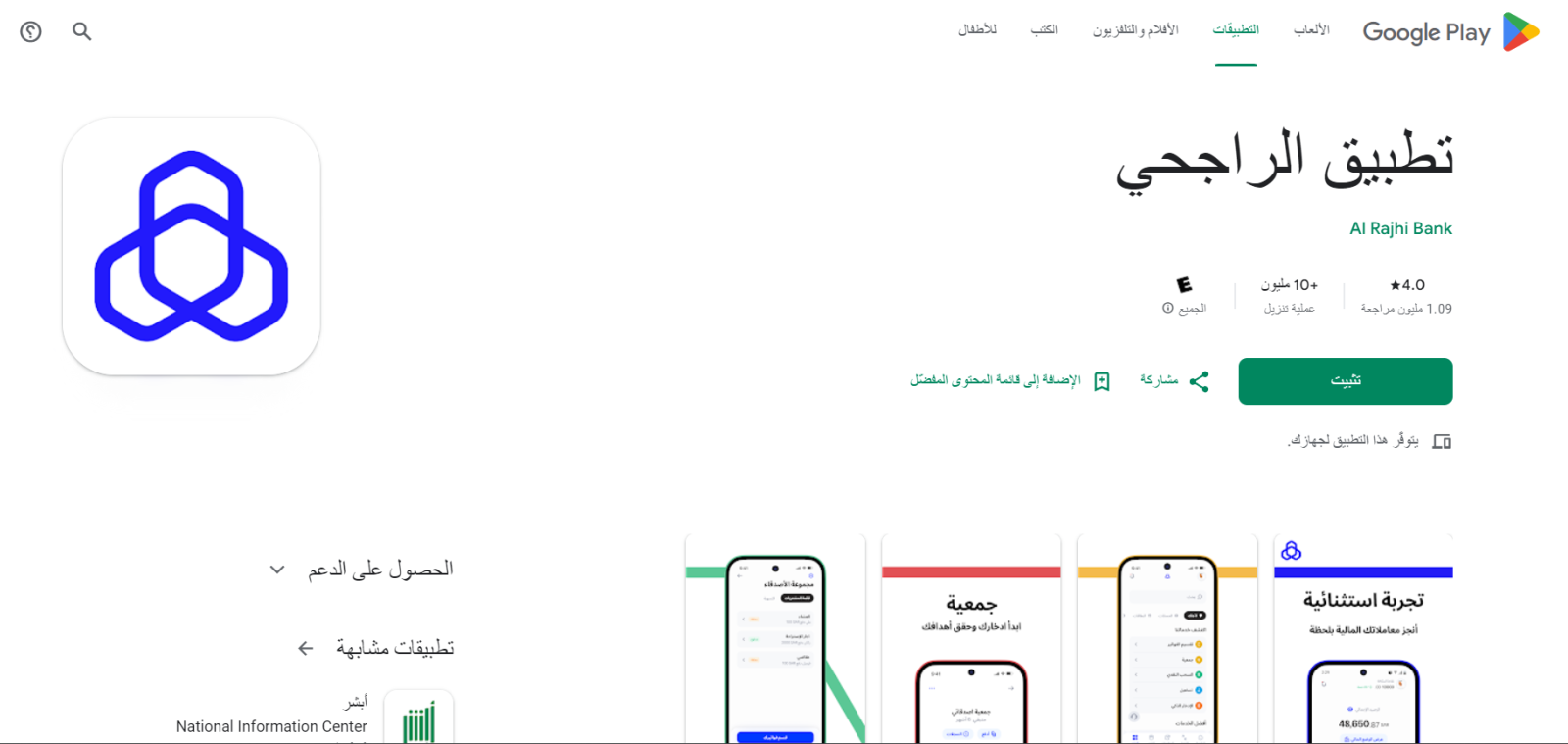 - قم بتنزيل تطبيق الراجحي على هاتفك النقال من خلال الرابط المخصص لنظام Android "من هنا"، أو لأجهزة iPhone من خلال الرابط "من هنا".