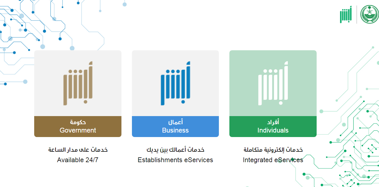 - الذهاب إلى منصة أبشر الرقمية.