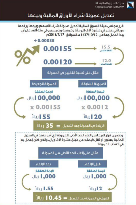 - حصة الهيئة العامة لسوق المال هي نقطتان، ولا تخضع إلى ضريبة القيمة المضافة، لكن تخضع باقي قيمة العمولة للضريبة.
