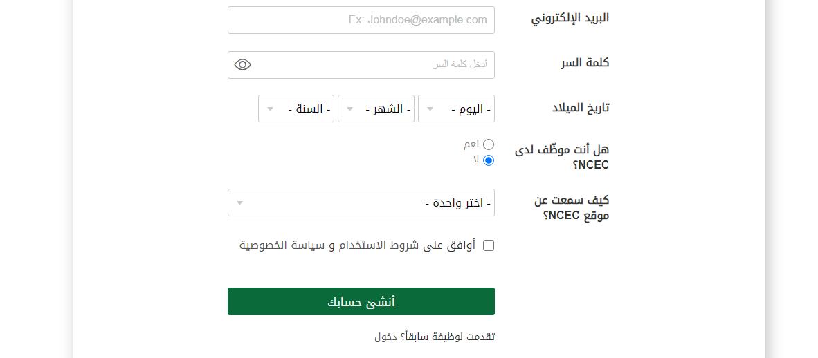 - سوف يتم إنشاء حساب سيرة الذاتية للمُتقدم.