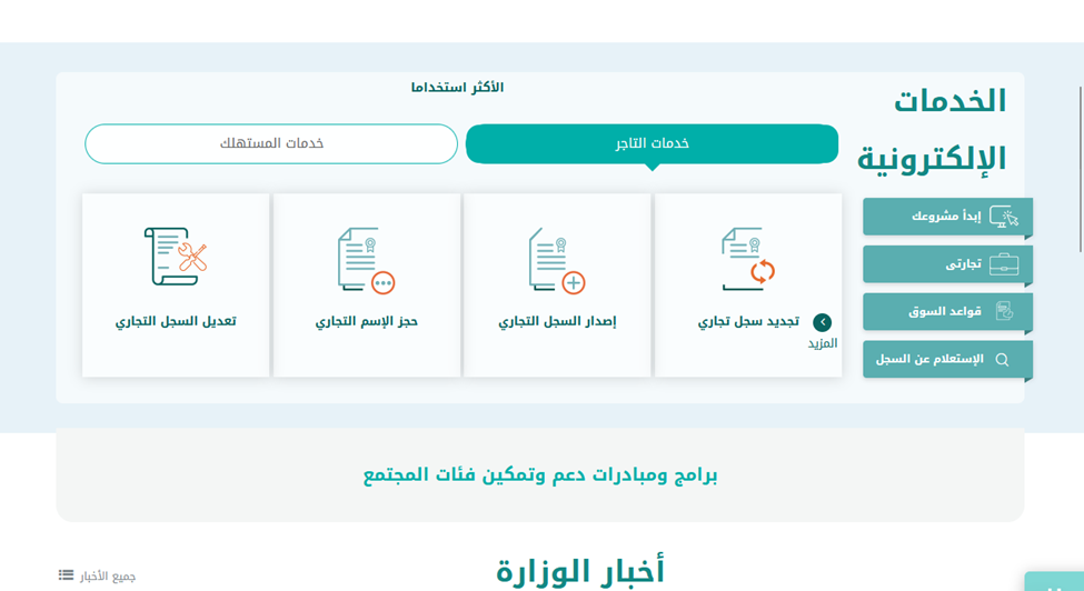 - الانتقال إلى الموقع الرسمي لوزارة التجارة السعودية.