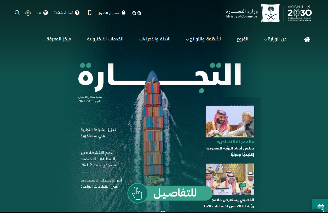- الوصول إلى الموقع الرسمي لوزارة التجارة السعودية.