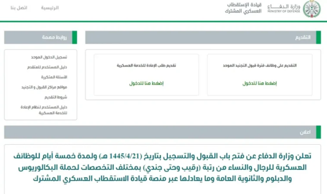 التخصصات المطلوبة في وزارة الدفاع التجنيد الموحد