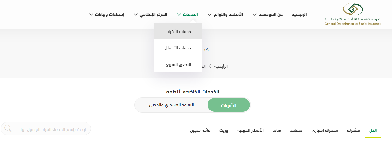 - الانتقال إلى بوابة المؤسسة العامة للتأمينات الاجتماعية.