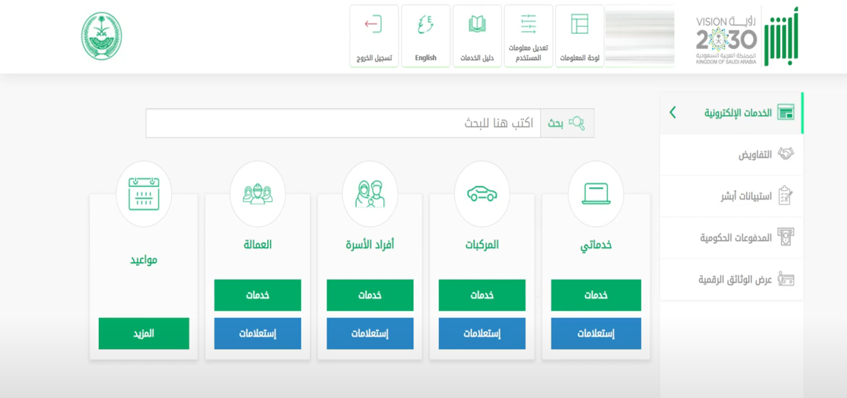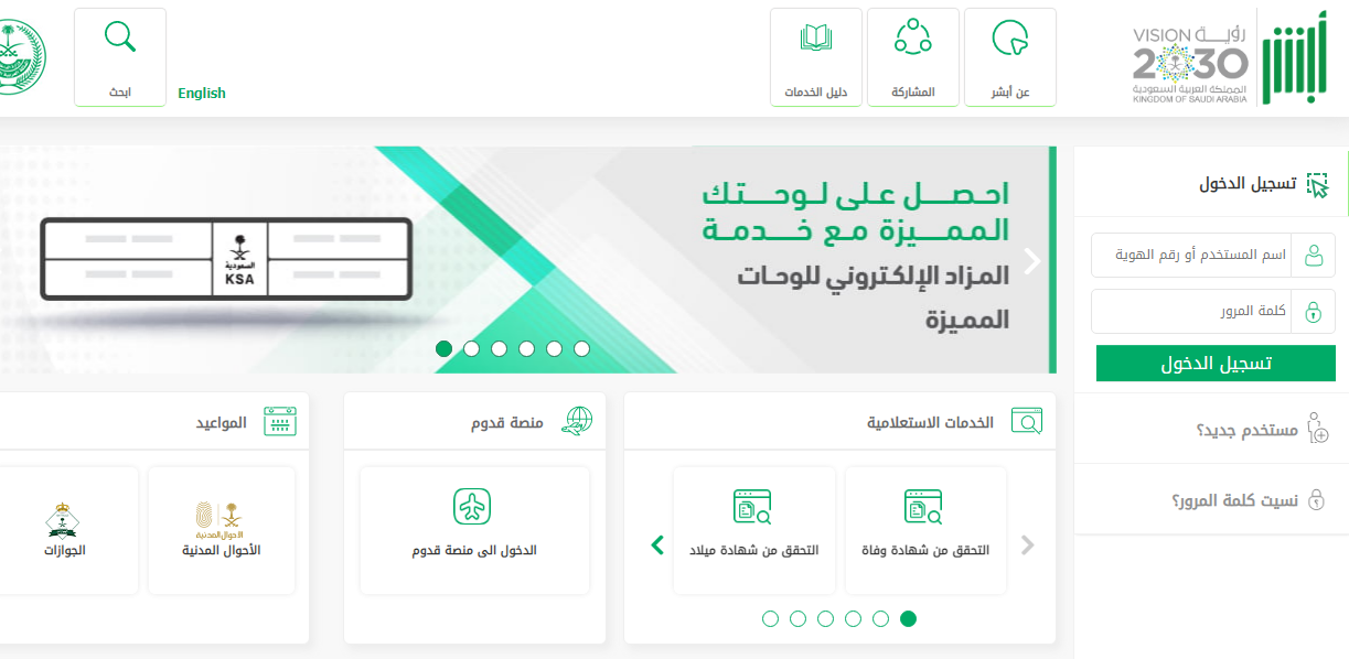 - اذهب إلى الموقع الإلكتروني الرسمي بوابة أبشر.