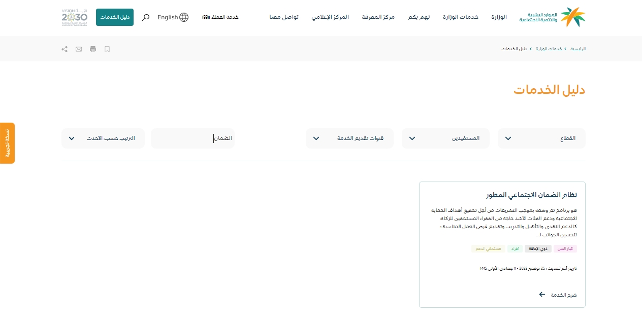 - ابحث عن "نظام الضمان الاجتماعي المطور" ومن ثم ادخل للخدمة.