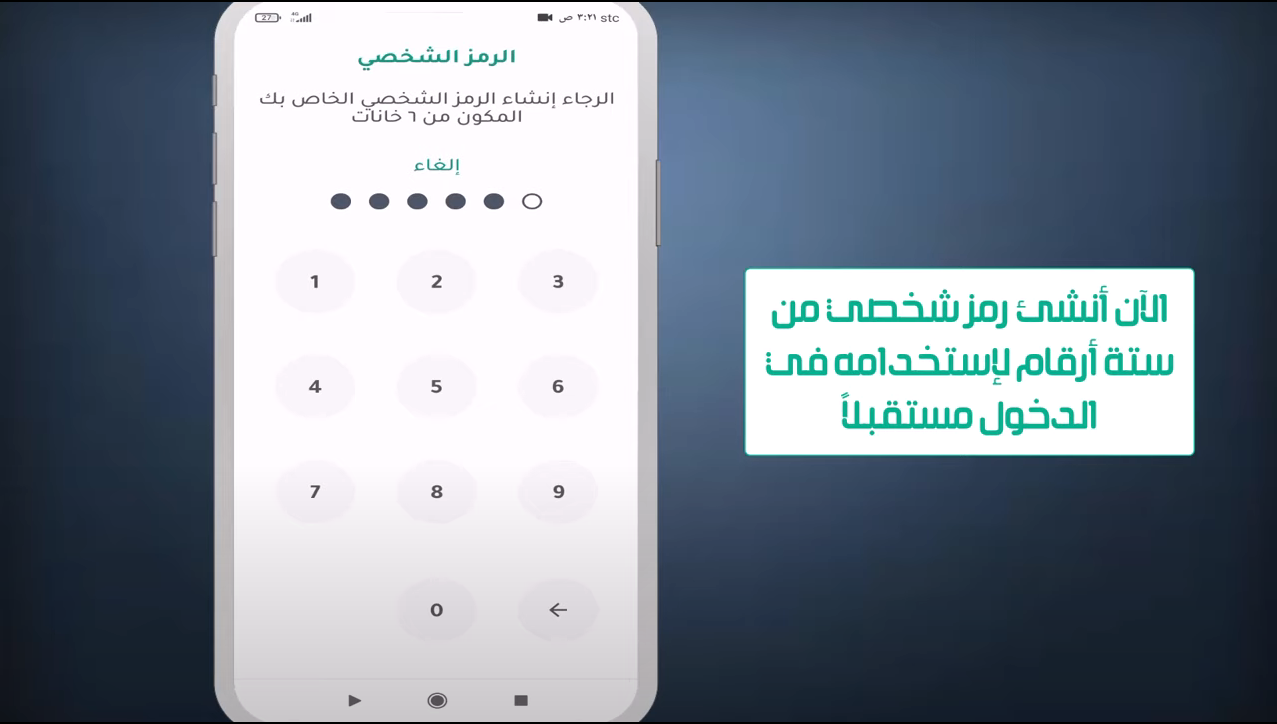 - الآن يتم التوجه إلى صفحة إنشاء الرمز الشخصي المُكون من 6 أرقام.