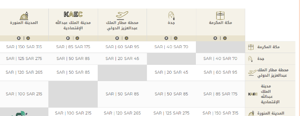 في إطار التعرف على كم المسافة بالقطار بين مكة والمدينة، والاطلاع كذلك على كافة خطوات حجز قطار الحرمين من مكة المكرمة إلى المدينة المنورة، نتعرف من خلال ما يلي على كافة أسعار تذاكر القطار من مكة المكرمة إلى المدينة المنورة المبين من خلال الصورة التالية: