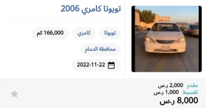 وعلى من يرغب في الحصول عليها بالتقسيط أن يقوم بدفع 2000 ريال سعودي مقدم بالإضافة إلى 1000 ريال سعودي في بداية كل شهر، ويمكنك التواصل بشكل مباشر من أجل الحصول على السيارة أو التعرف على المزيد من التفاصيل من خلال الرقم +966594025133.
