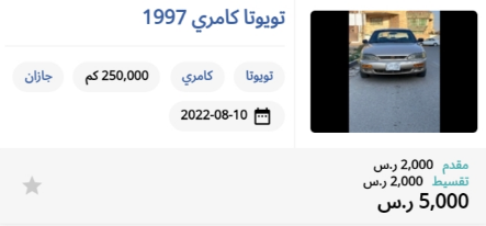 1- سيارة تويوتا كامري 1997 مستعملة للبيع