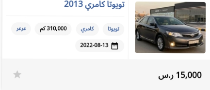 2- للبيع سيارة تويوتا كامري 2013 مستعملة