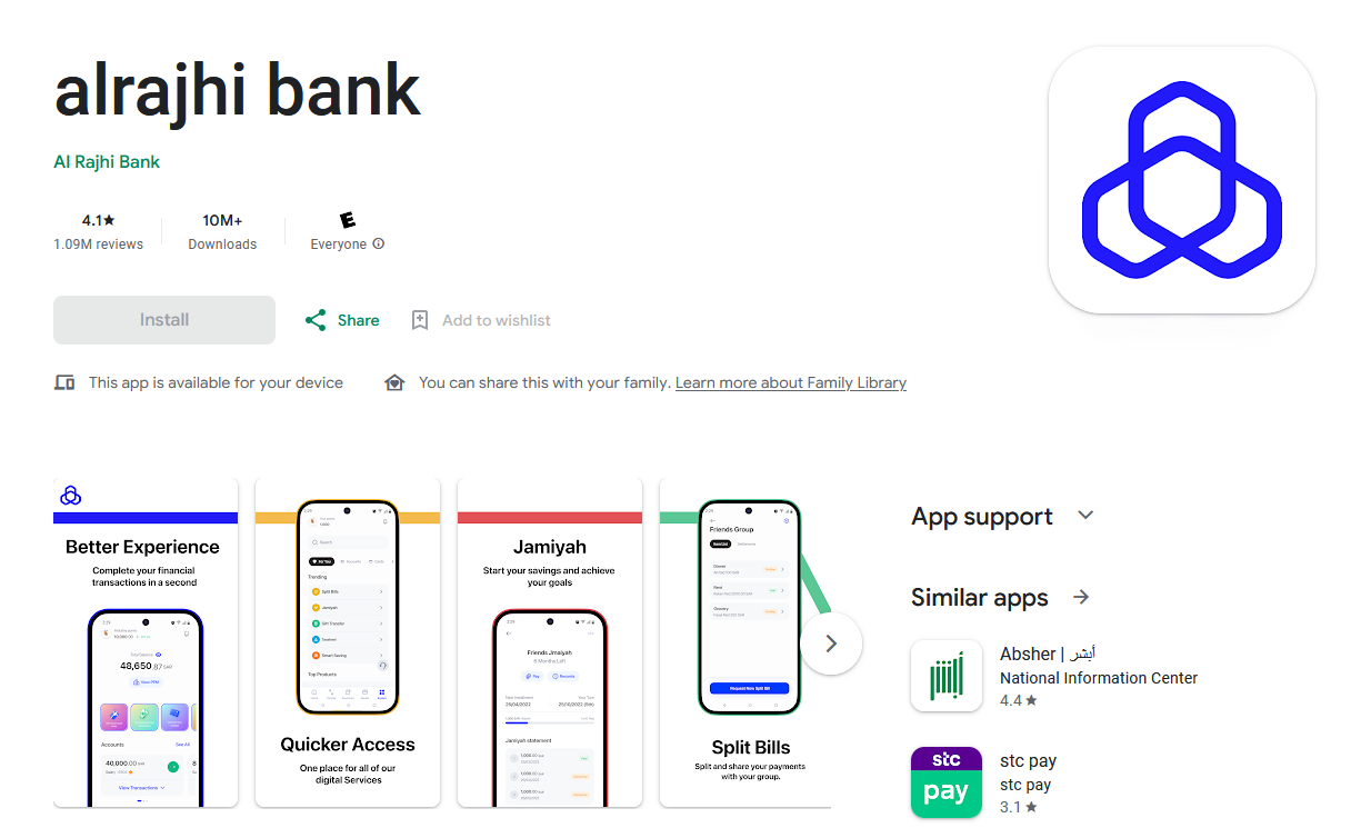 - الوصول إلى تطبيق الراجحي.