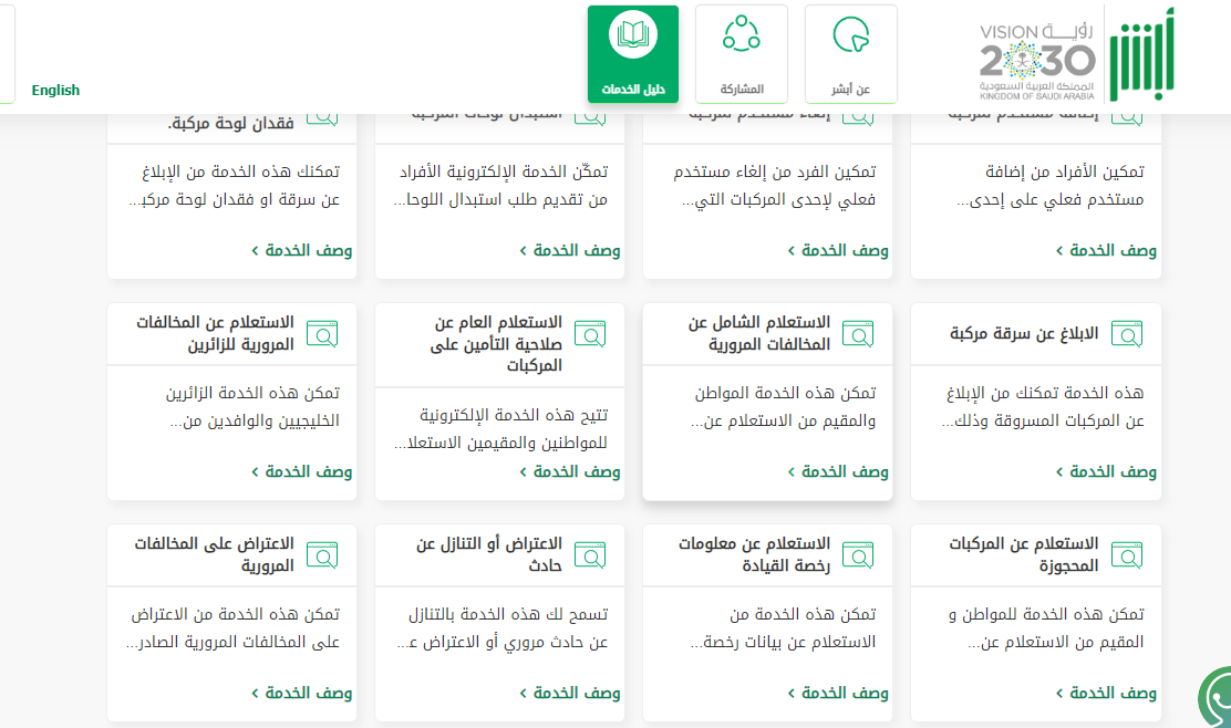 - اختيار خدمة "الاستعلام الشامل عن المخالفات المرورية"، والنقر على "وصف الخدمة".