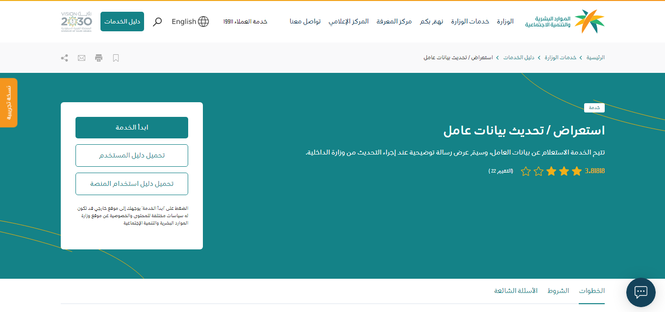 - يقوم المستخدم بتحديد خدمة استعراض بيانات عامل من قائمة خدمات العمالة.