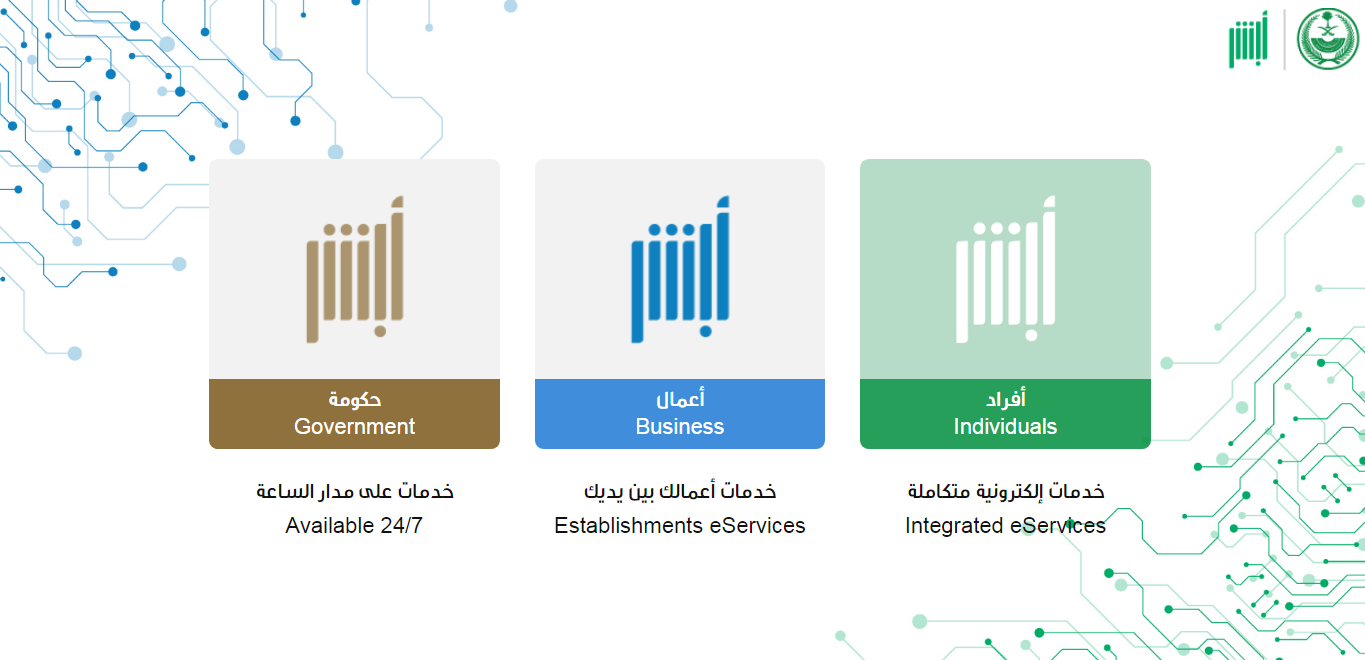 - الولوج إلى منصة أبشر الرقمية.