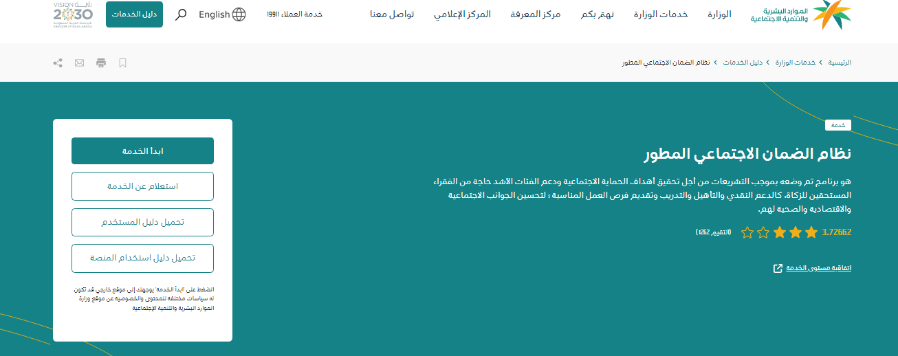 - ستظهر صفحة نظام الضمان الاجتماعي المطور مباشرةً.