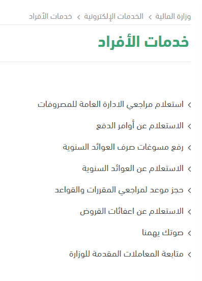 - الضغط على قائمة خدمات الأفراد.