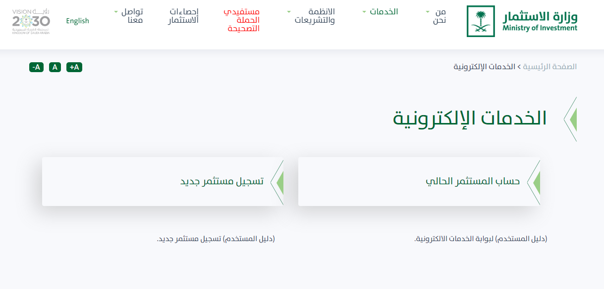 - يتم التوجه إلى الصفحة الرسمية لوزارة الاستثمار.