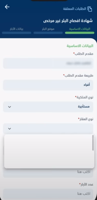 - اضغط على علامة التبويب "طلب رخصة حفر بئر".