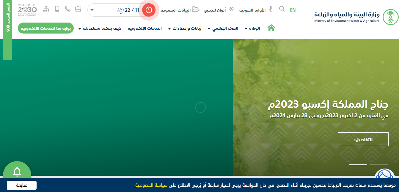 - الدخول إلى الموقع الإلكتروني لوزارة البيئة والمياه والزراعة.