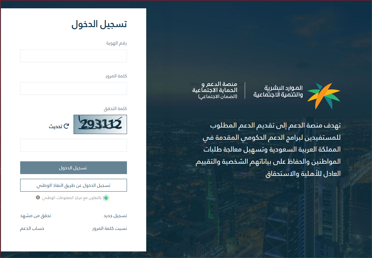 - قم بالدخول إلى الموقع الرسمي لمنصة الدعم والحماية الاجتماعية.