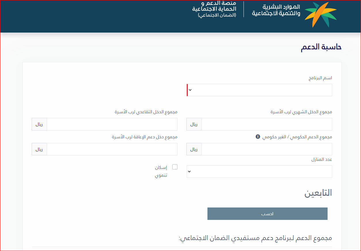 حاسبة الدعم التقديرية ببرنامج الضمان الاجتماعي المطور