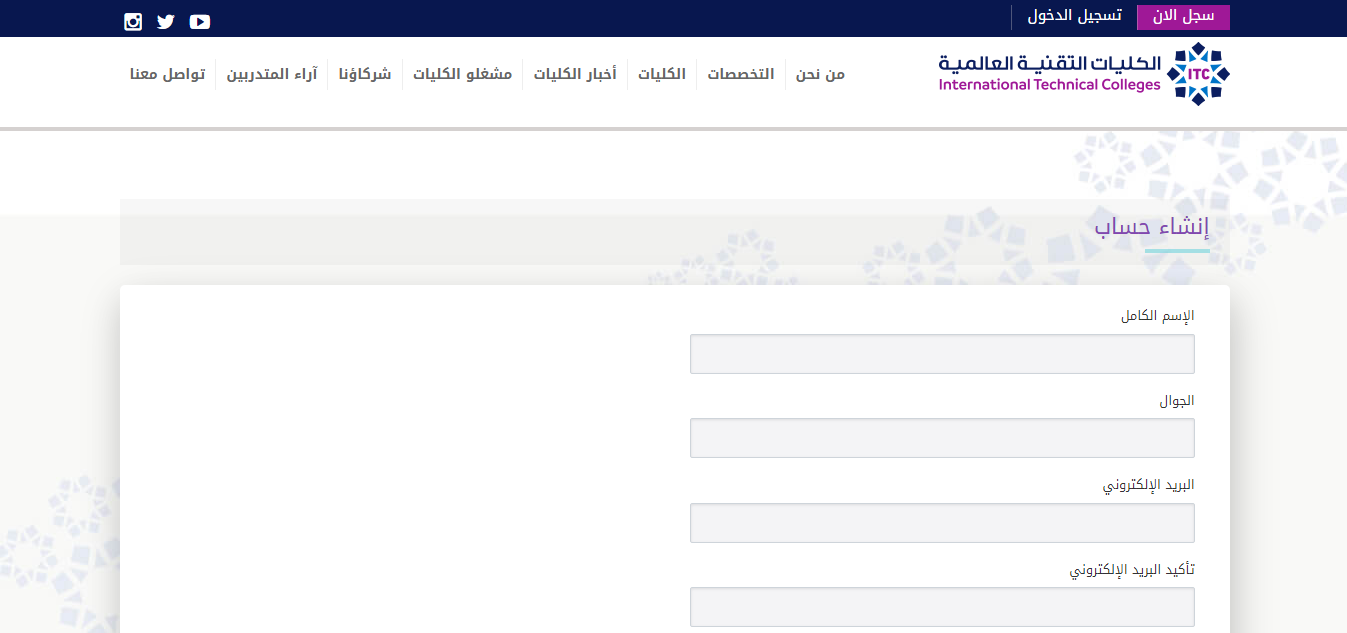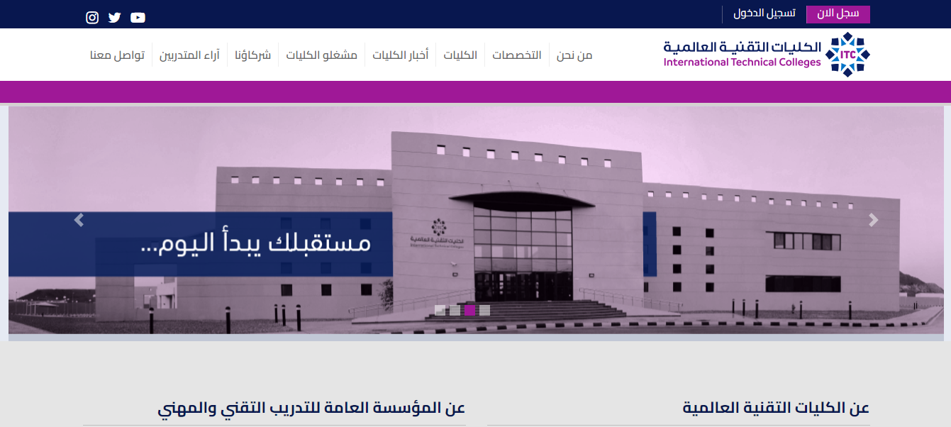 - الولوج للموقع الإلكتروني الخاص بالكلية التقنية العالمية.